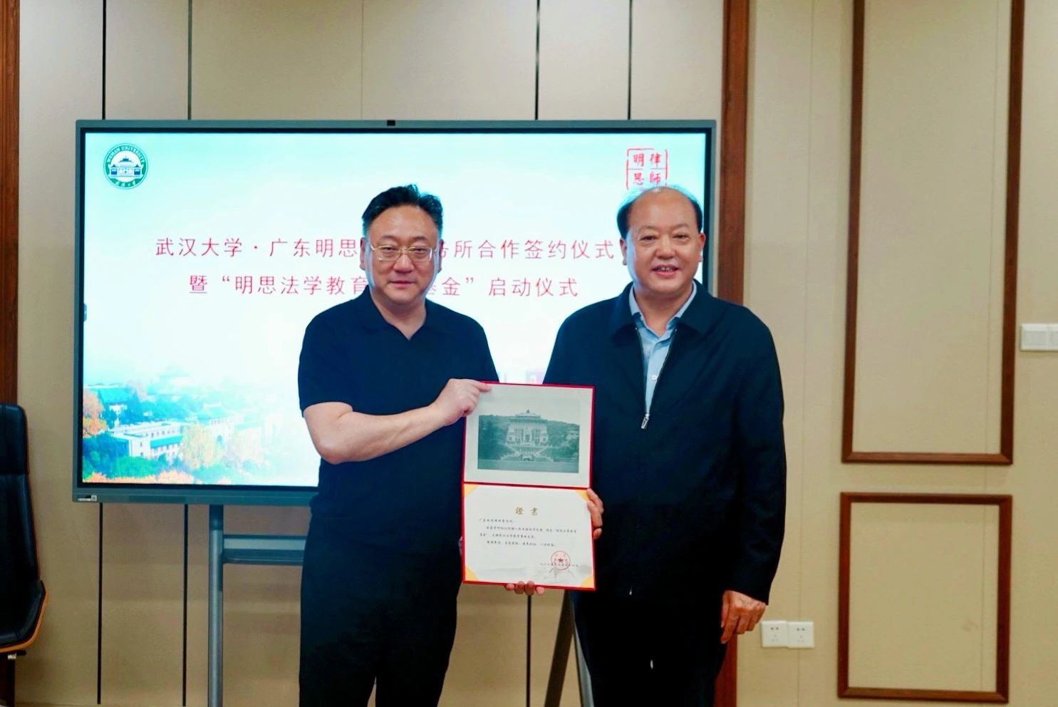 4月24日下午,明思法学教育发展基金启动仪式在武汉大学法学院举行。广东明思律师事务所捐赠500万元设立“明思法学教育发展基金”,专项用于支持武汉大学法学院人才队伍建设、学科发展及国际交流水平的提升。