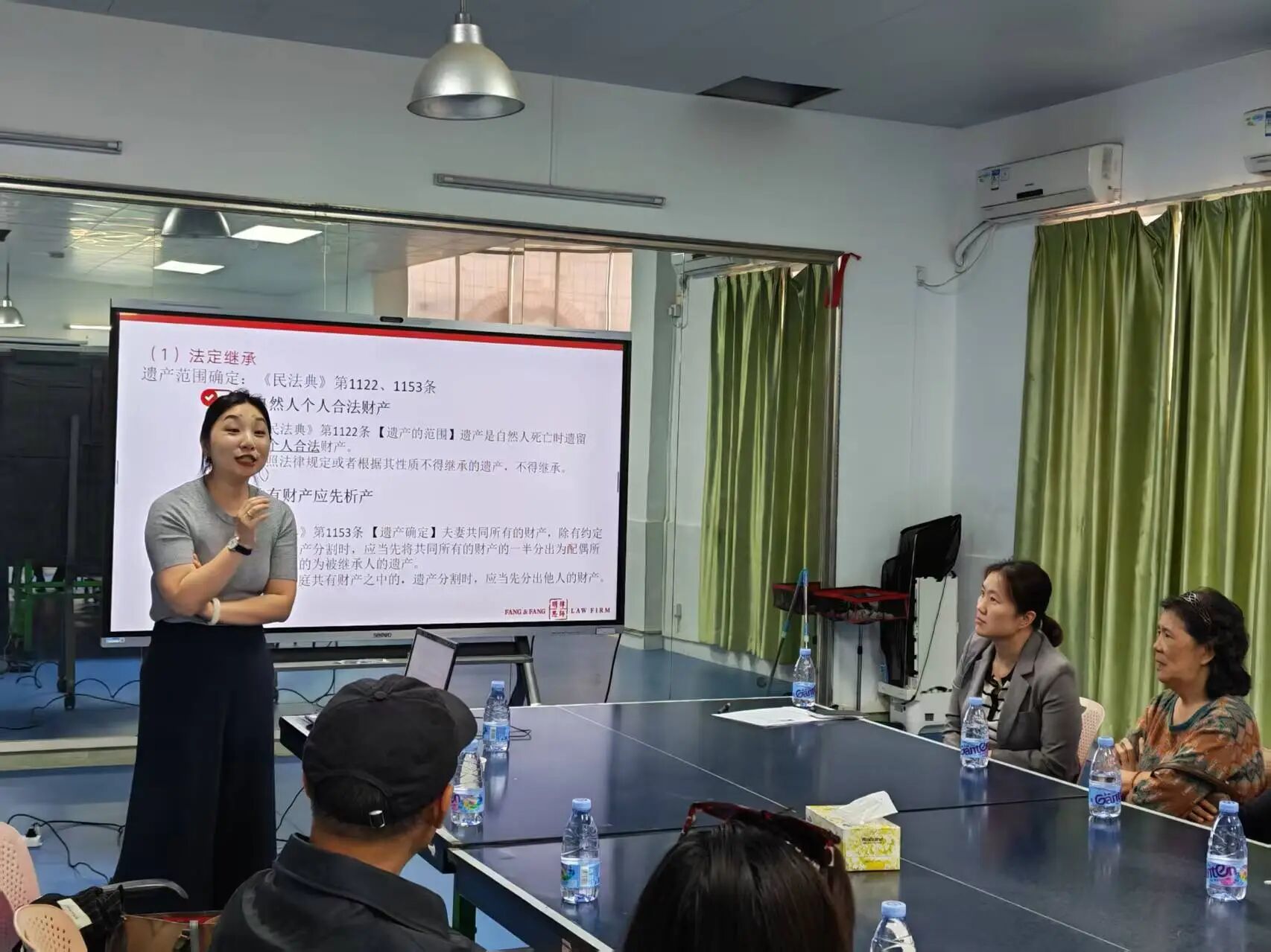 讲座当天,鹿颈村村民委员会会议室早早坐满了前来“听课”的村民,既有白发苍苍的老人,也有刚回乡创业的年轻人。为了让大家听得懂、记得住、用得上,顾问律师将《民法典》继承编中关于六类遗嘱的条文内容,拆解成一个个“生活化”场景,配合真实案例进行讲解。