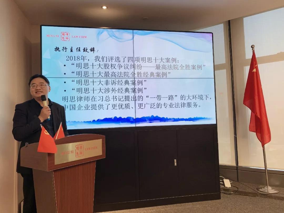 2019年的第一个月,非常振奋的告诉大家,我们律所的合同签约金额超过了去年的第一个季度,今年又会是一个繁忙和紧张的一年。最后,我再次感谢过去一年全体同仁做出的卓越贡献;感谢全体律师勤勉尽责地为客户提供优质高效的法律服务;感谢明思全体同仁的家属们默默的支持和鼓励。在此,我祝愿明思全体同仁阖家欢乐,新春愉快!祝愿明思在新的一年筑梦远航,再创辉煌!